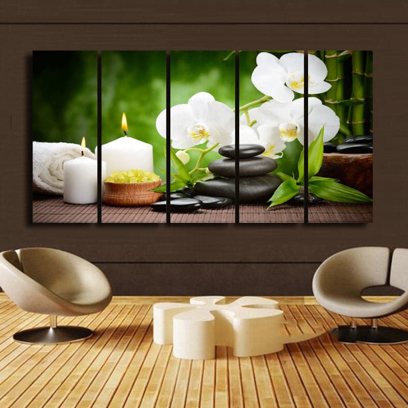 Modern Botanical Canvas Wall Art Print Poster | Home Decor | Stretched 5 Panels - Relax