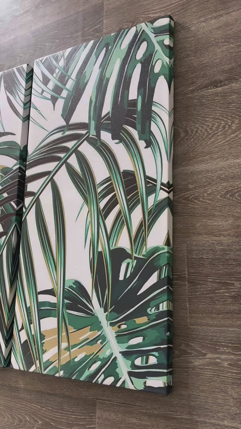 Modern Botanical Canvas Wall Art Print Poster | Home Decor | Stretched 3 Panels - Leaf