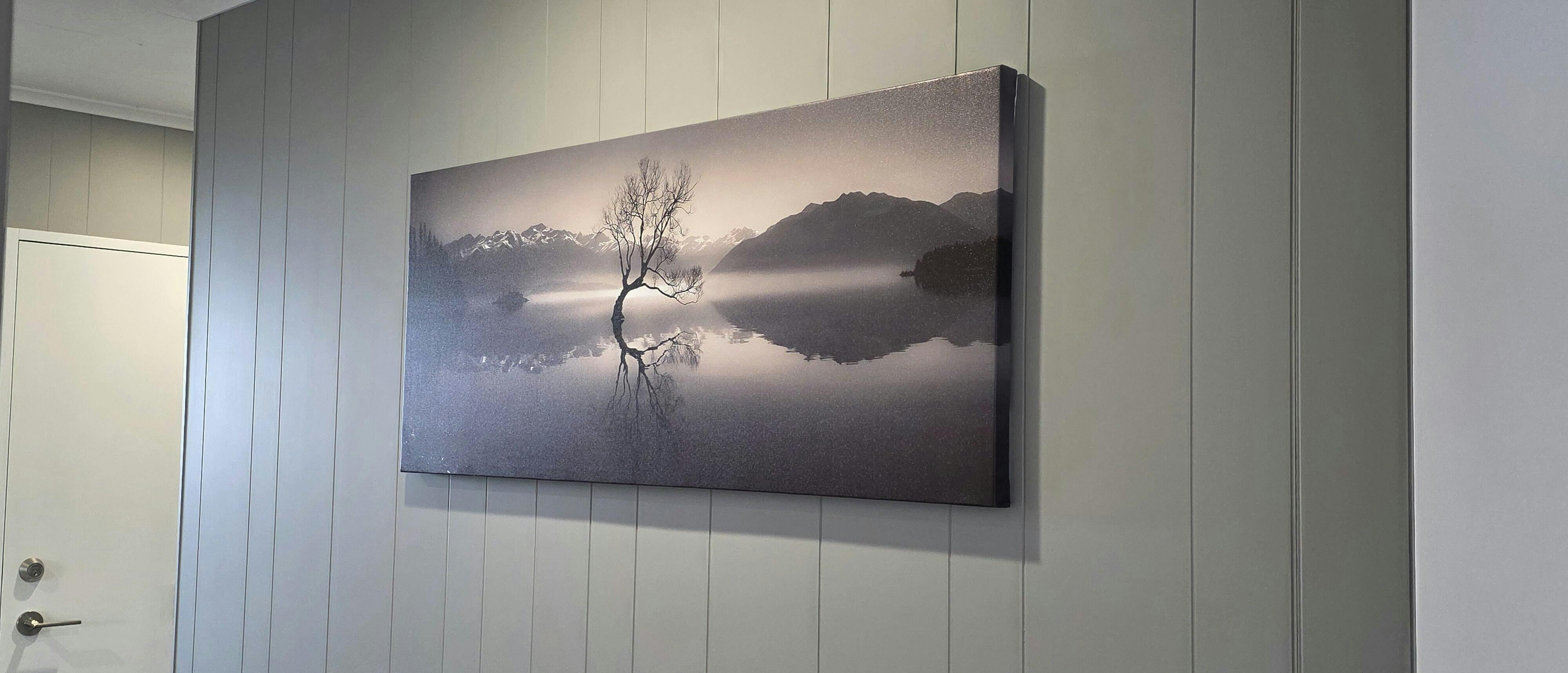 - Proudly hand frame in New Zealand. Premium quality canvas wrapped around a NZ pine frame. Each item come frameless stretched ready to hang.